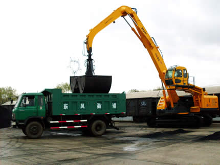新型二節(jié)臂履帶卸車機(jī)廣泛應(yīng)用在各大火車站貨場(chǎng)